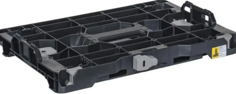 Sovitinlevy sähkötyökaluille. Valmistettu vahvasta ABS-muovista. Sovitinlevy on yhteensopiva useiden sähkötyökalujen valmistajien alkuperäisten laatikoiden kanssa. Levyssä olevien erilaisten liittimien avulla voit helposti liittää alkuperäisen laatikon ja integroida sähkötyökalusi modulaarisen järjestelmän eri säilytyslaatikoiden kanssa. Sovitinlevy sopii malleihin Dewalt/Stanley TSTAK2, BS Systems L-BOXX, Tanos Systainer3 ja Makita MakPac.