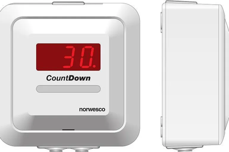 Elektroninen suojausajastin, jossa on digitaalinen näyttö jäljellä olevasta toiminta-ajasta 1–999 min. Iskunkestävästä kestomuovista valmistettu valkoinen kotelo, suojausluokka IP20.