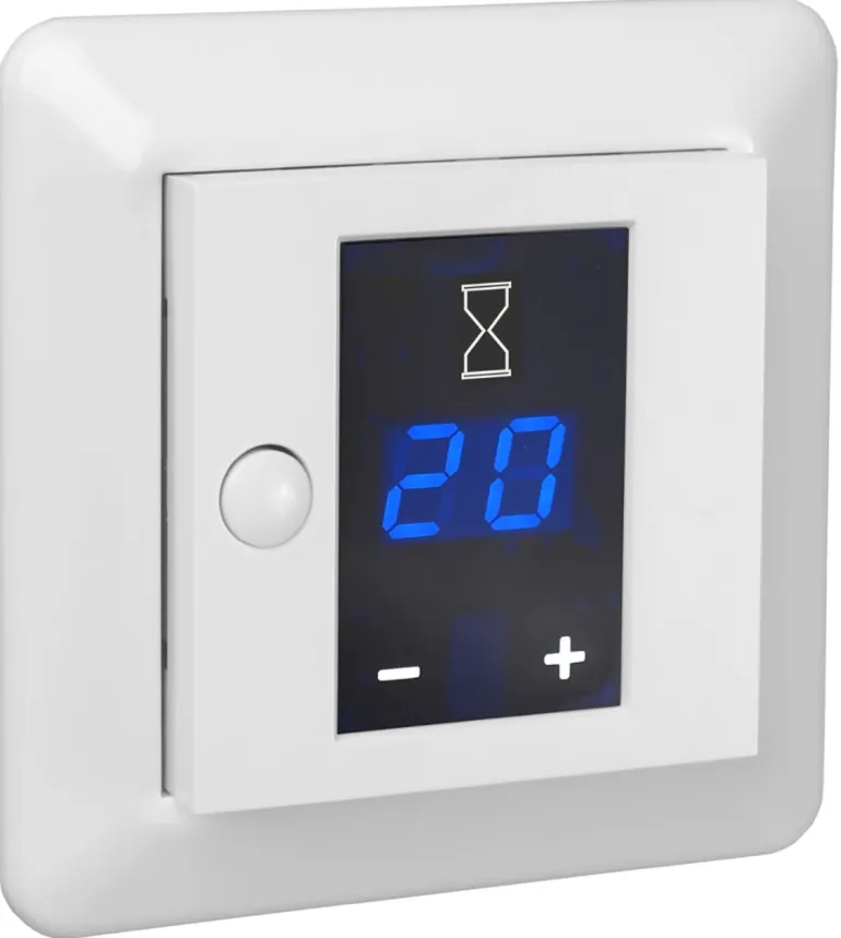 Elko EKO30153 on ajastin näytöllä, joka näyttää jäljellä olevan ajan. On/On ja On/Off toiminnoilla. Painike voidaan kytkeä sivuohjaimeksi. Voidaan asettaa minimi- ja maksimiajat. 16A, 2-napaiset mekaaniset kytkimet. Asennussyvyys 25 mm.