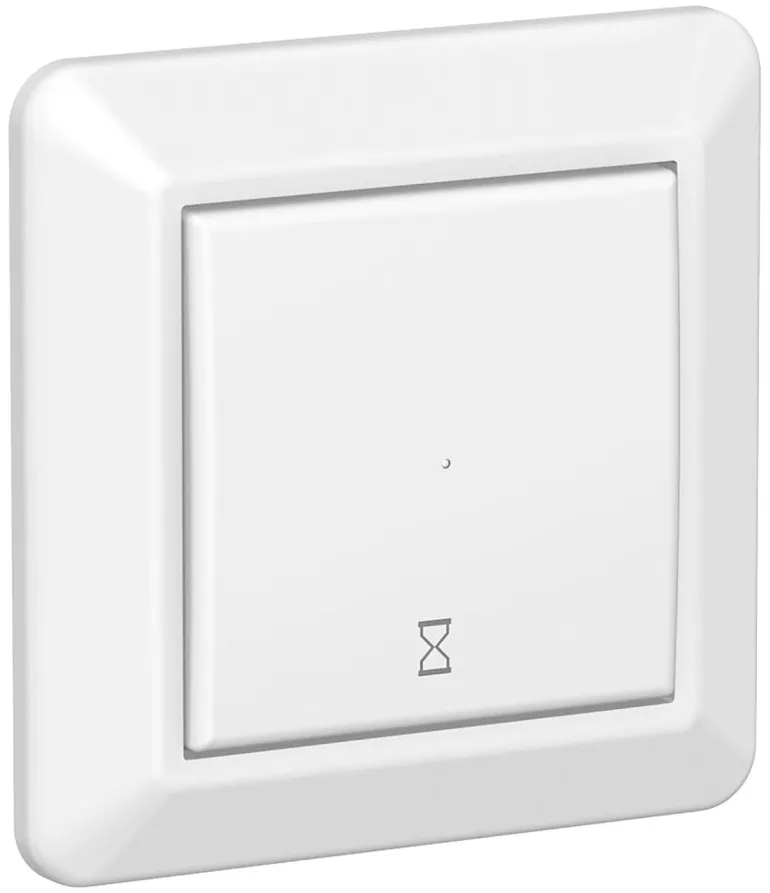 Elektroninen ajastin (10A) painikkeella, jonka viivettä voidaan säätää välillä 5min – 8h (oletusarvona 5min). Tuotteessa on sisäänrakennettu painike, mutta myös mahdollisuus ohjata ulkoisella painikkeella. Uppoasennettavaksi kojerasiaan.