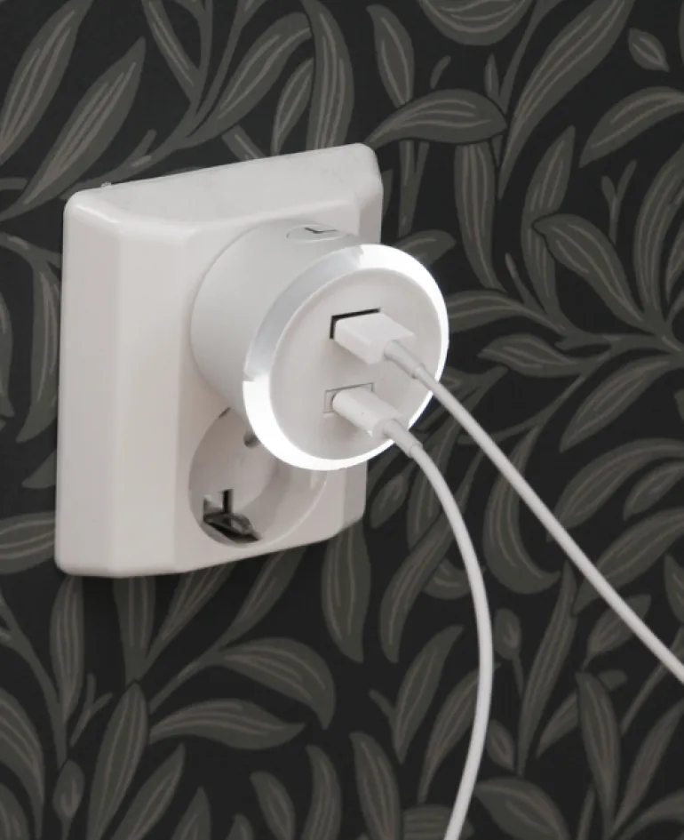 CAPiDi 1330723 on valkoinen ajastinpistorasia USB C- ja A -latausportilla. Kompakti muotoilu. Sisäänrakennettu ajastintoiminto, joka katkaisee virran 1, 2, 3 tai 4 tunnin kuluttua.