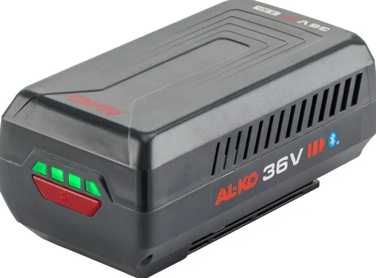 Akku B160 Li 36 V / 4,0 Ah, joka sopii kaikille AL-KO 36 V -tuotteille. Litiumionitekniikka ilman muistiefektiä – voidaan ladata milloin tahansa. Bluetooth®-tekniikalla nopeaan ja helppoon yhdistämiseen.