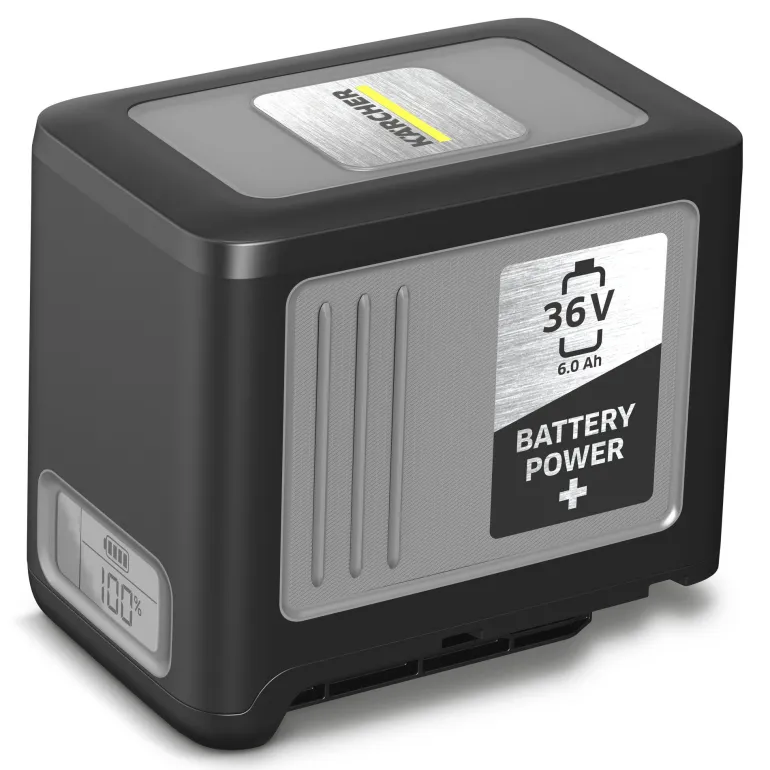Kärcher Power+ 36/60 on Power+-sarjan tehokas 36 V:n litiumioniakku, jonka kapasiteetti 6,0 Ah. Akku vakuuttaa uskomattomalla tehokkuudellaan ja pitkällä käyttöajallaan. Innovatiivinen reaaliaikatekniikka informoi LCD-näytöllä akun varaustilasta ja laitteen jäljellä olevasta käyttöajasta. Integroitu jännitteenvalvonta ja ylivirtasuojaus estävät kennojen vaurioita, jotka aiheutuvat ylijännitteestä, syväpurkautumisesta ja ylivirtauksesta.
