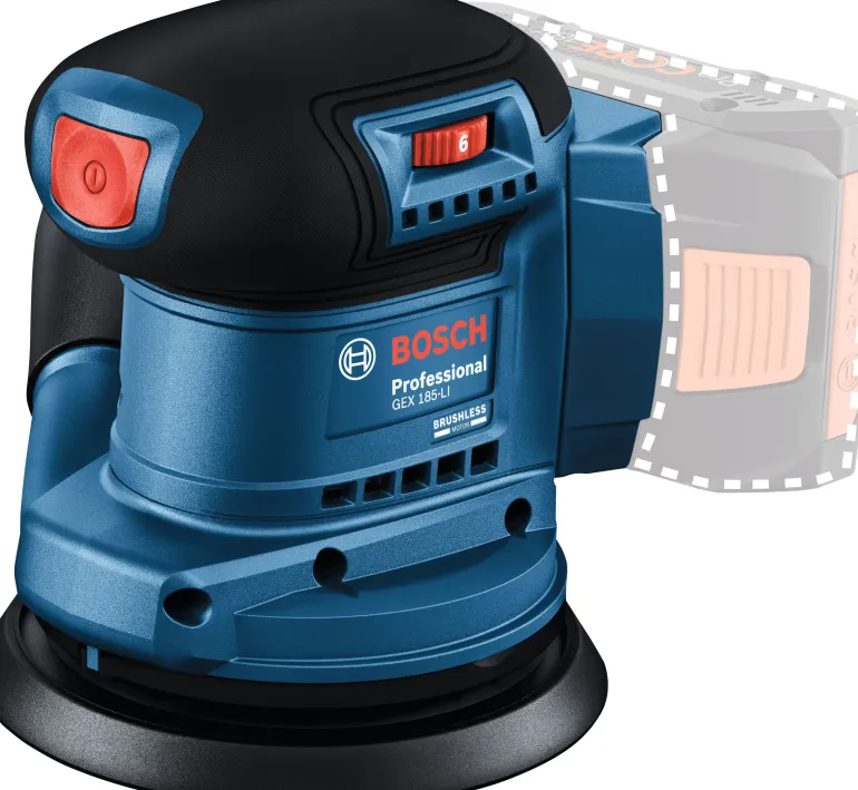 Bosch Professional GEX 185-LI takaa tasapainoisen ja vakaan hionnan ja vähentää käsivarsiin kohdistuvaa rasitusta. Erittäin suorituskykyisen, hiiliharjattoman moottorin käyttöaika on kertalatauksella jopa 40 minuuttia ja se tarjoaa lähes yhtä suuren työstötehon kuin verkkovirtakäyttöinen hiomakone. Se on yhteensopiva kaikkien 18 V:n Bosch-akkujen kanssa. Kompakti, kevyt, ergonominen runko sekä tehokas tärinänvaimennus mahdollistavat tämän monipuolisen hiomakoneen helpon ja miellyttävän käytön vain yhdellä kädellä.