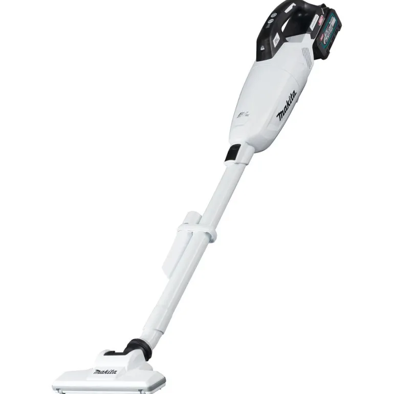 Valkoinen akkukäyttöinen varsi-imuri hiiliharjattomalla moottorilla ja HEPA-suodattimella. Erittäin kätevä työkalu, kun on tarvetta nopealle pölyn ja roskien imuroinnille. Voimanlähteenä XGT® 40 V -akku.