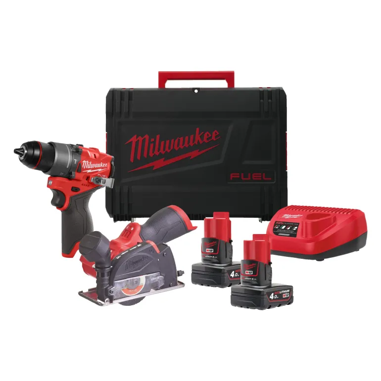 Milwaukee M12 FPP2G2-402X PowerPack on akkukonesarja, joka sisältää kompaktin M12 FPD2 FUEL™-iskuporakoneen ja kompaktin M12 FCOT FUEL™ -suorakatkaisukoneen. Mukana 2 kappaletta 4,0 Ah Redlithium-akkuja, 80 min. M12 C12 C –laturi ja HD-säilytyslaatikko.