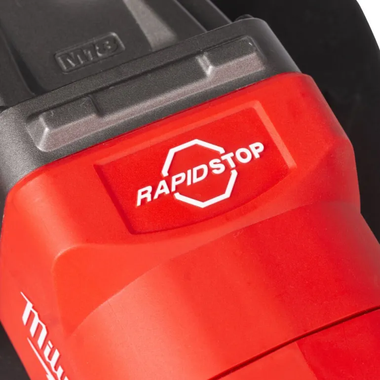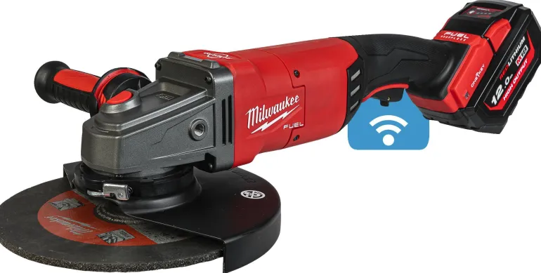 Milwaukee M18 FUEL™ ONE-KEY™ 230 mm akkukulmahiomakone kuolleen miehen kytkimellä, jarrulla ja hiiliharjattomalla POWERSTATE-moottorilla. Tuottaa 2200 W sähkökäyttöistä työkalua vastaavan tehon. ONE-KEY™-työkaluseuranta ja -turvallisuustoiminnot tarjoavat ilmaisen pilviteknologialla toimivan työkaluhallinta-alustan, joka mahdollistaa työkalujen etälukituksen. RAPIDSTOP™ pysäyttää laikan alle 3 sekunnissa suojaten käyttäjää. Lukitsematon turvakytkin jälleenkäynnistymissuojalla estää vahinkokäynnistymisen.