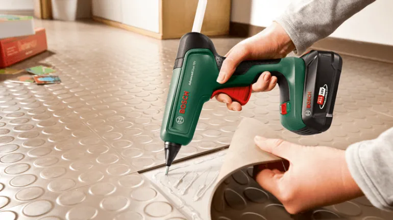 Tehokas akkuliimapistooli askarteluun, kodin korjaustöihin ja luoviin projekteihin. AdvancedGlue 18V on suorituskykyinen akkuliimapistooli, joka on yhtä tehokas kuin verkkovirtakäyttöinen laite, ja yhteensopiva Boschin 18 V:n akkujärjestelmän kanssa. Liimapistooli lämpenee käyttövalmiiksi nopeasti vain 90 sekunnissa.