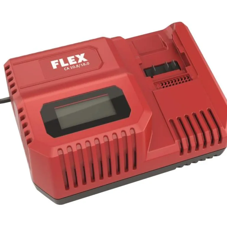 Akkulaturi FLEX Li-ion-akuille 10,8 V ja 18 V. Laturi, jossa iso LCD-näyttö akun diagnostiikkaa ja varaustilan näyttöä varten. Latausaika noin 40 min 18 V:n 2,5 Ah:n akulla ja noin 50 min 18 V:n 5,0 Ah:n akulla. Akun jäähdytin ja lataus- ja ylikuormitussuoja. Yhteensopivuus FLEX 18 V -litiumioniakku
