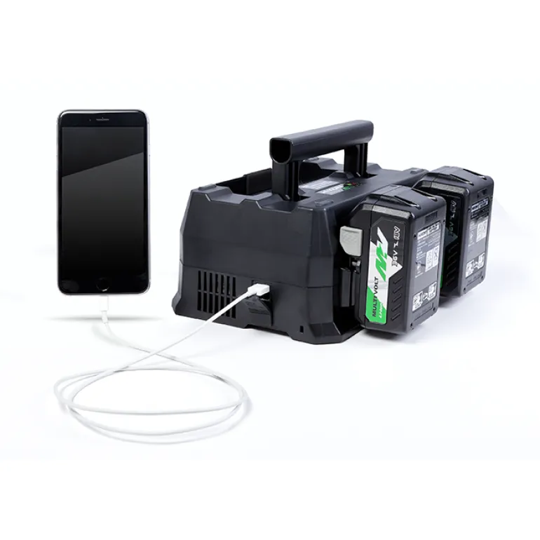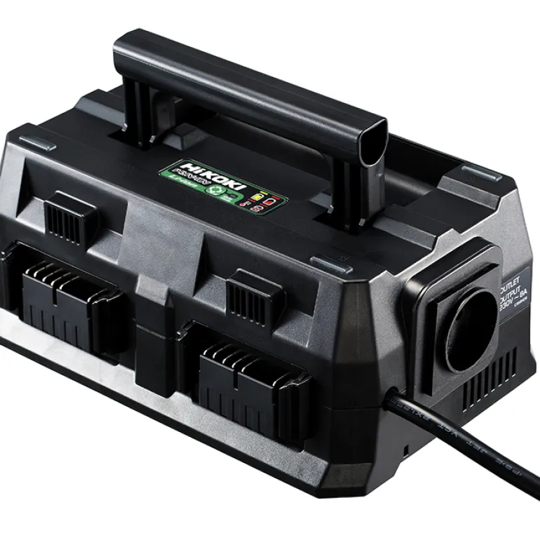 HiKOKI UC18YTSL on akkulaturi, jossa on jäähdytin. Latausaika riippuu siitä, montako akkua on latauksessa yhtä aikaa. USB-pistokkeella voi ladata kännyköitä, tabletteja jne. Helppo käsitellä kantokahvan ansiosta.