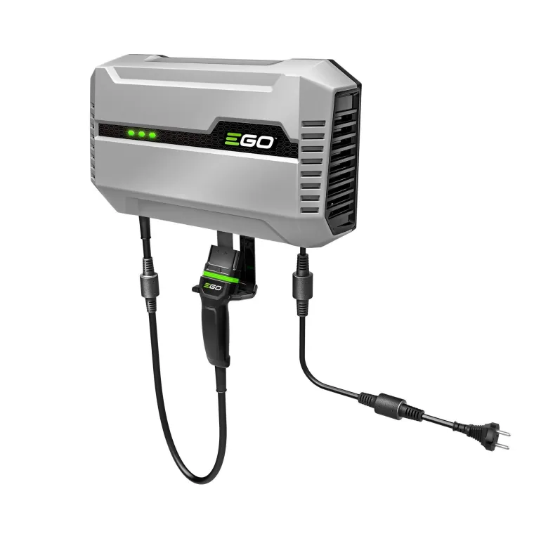 EGO CHV1600E on seinään kiinnitettävä 1 600 W:n pikalaturi, joka syöttää virtaa EGO CHU6000 -latauskoteloon ja päältäajettavaan EGO ZT4200E-L ruohonleikkuriin. Korkea teho tarkoittaa, että esimerkiksi neljä EGO 10,0 Ah:n akkua voidaan ladata vain kahdessa tunnissa.