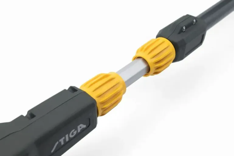 STIGA MT 500e Kit on kevyt ja tehokas johdoton akkumonitoimilaite, joka yhdistää teleskooppisen runkoputken, pensasleikkuri- sekä oksasahalaitteen. Sen avulla voit helposti viimeistellä ja karsia vaikeasti tavoitettavissa olevia pensaita ja puita. Korkealle ylettyvä akkukäyttöinen pensasleikkuri ja oksasaha, joka mahdollistaa meluttoman ja pakokaasuista vapaan käytön. Tehokkaan 48V, 2 Ah -akun ja pensasleikkurin kestävän laserhiotun kaksoisterän sekä oksasahan 25 cm laipan ansiosta MT 500e Kit -monitoimilaite leikkaa sujuvasti. Jotta yllät korkeisiin puihin ja pensaisiin on tässä monitoimilaitteessa 75 cm teleskooppinen jatkovarsi, minkä avulla yllät pensasleikkurilla jopa 4,30 metrin korkeuteen ja oksasahalla jopa 4 metrin korkeuteen (ilmoitettu pituus perustuu ihmisen keskipituuteen) . Oksasahan laipan korkealaatuinen terä minimoi takapotkut. Laite on myös mukava käyttää ja käytännöllinen, sen pensasleikkurin 112° kääntyvä, 6-portainen leikkuupää mahdollistaa työskentelykulman asettamisen siten, että se minimoi rasituksen käyttäjälle. Ja kahvan sekä runkoputken kosketuspinnan pehmeän kumipinnan, sekä olkahihnan kiinnityskoukun ansiosta työskentelet vahingoittamatta käsiäsi ja raajojasi. Turvallista, mukavaa ja tarkkaa leikkausta varten MT 500e -oksasahalaitteessa on terän alla oksia vasten nojaava tukipuskuri.