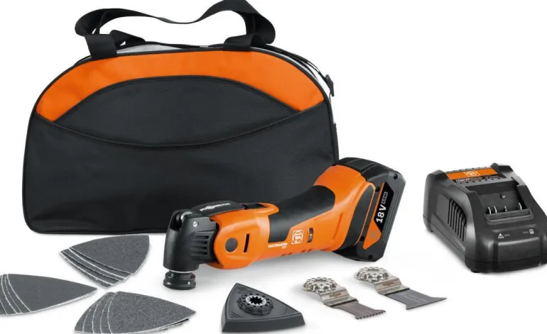 Tehokas akkukäyttöinen monitoimityökalu MULTIMASTER AMM 700 Max AS, jonka mukana 18 lisävarustetta sahaukseen ja hiomiseen. Aina mukana ja kaikki käden ulottuvilla kätevässä nailonlaukussa, mukana 18 V 4 Ah -akku ja laturi.