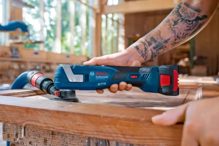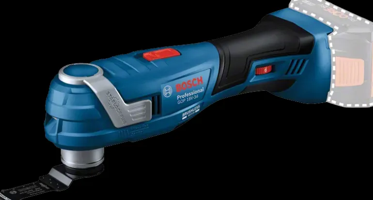 Bosch GOP 18V-34 Professional on akkumonitoimityökalu hiiliharjattomalla moottorilla ja patentoidulla Snap-In-lukitusjärjestelmällä. Yhteensopiva lähes 100 käyttötarvikkeen kanssa.