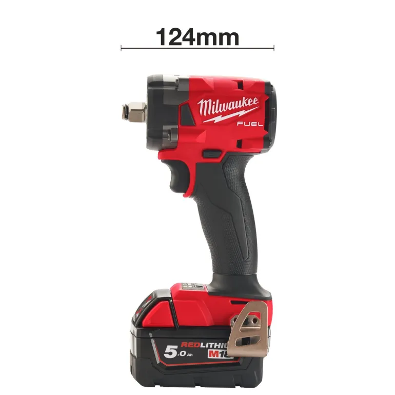 Milwaukee M18 FUEL™ 1/2″ kompakti akkukäyttöinen iskevä mutterinväännin kitkarenkaalla. Teho jopa 339 Nm ja kokonaispituus vain 124 mm.