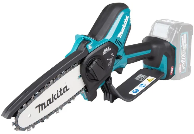 Kevyt ja kompakti 40 V XGT ® -akkuoksasaha oksien ja puutavaran sahaamiseen 15 cm laipalla. Helppokäyttöinen oksasaha hiiliharjattomalla moottorilla ja automaattisella teräketjun voitelulla. Ohut teräketju ja ketjunopeus 8 m/s tekevät sahaamisesta nopeaa ja vaivatonta. Soveltuu keveytensä ja pienen kokonsa ansiosta oksien sahaamiseen monenlaisille käyttäjille. Teräketjun kiristäminen ja vaihto onnistuu ilman työkaluja. Helppokäyttöinen akkuoksasaha soveltuu keveytensä, vääntävän moottorinsa ja pienen kokonsa ansiosta oksien ja puutavaran sahaamiseen monenlaisille käyttäjille. Teräketjuöljyn tason seuraaminen ja lisääminen on vaivatonta, koska säiliö on sivulta läpinäkyvä ja täyttöaukon korkki avautuu ja sulkeutuu ilman työkaluja. Teräketjun kiristäminen ja vaihto hoituu sekin ilman työkaluja. Kiristysmekanismi on jousikuormitteinen, joten ketju on aina oikeassa tiukkuudessa, kun laippa kiristetään paikalleen. UC029G-sahaa voi käyttää kummalla kädellä tahansa, koska käyttökytkimen vapautusvipu on molemmilla puolilla takakahvaa. Runko ilman akkua ja laturia.