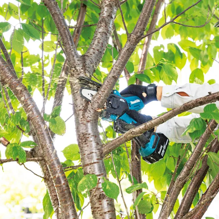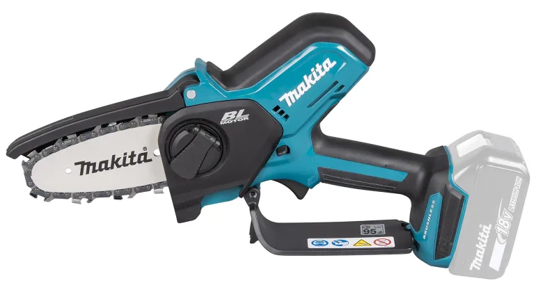 Makita DUC101 on kompakti akkuoksasaha, jossa on 10 cm:n laippa, automaattinen teräketjun voitelu ja elektroninen jarru. 8 m/s ketjunopeus helpottaa oksien ja pienemmän puutavaran sahaamista.