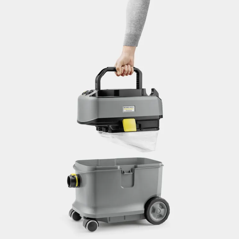 Akkukäyttöinen pölynimuri/akkuimuri Kärcher T 15/1 Bp tekee vaikutuksen ensiluokkaisella imutehollaan, hiljaisella käynnillään, kestävällä ja tukevalla muotoilullaan ja erinomaisella hinta-laatusuhteellaan. Battery Power+ -akut (36 V) takaavat maksimaalisen imutehon, pitkät käyttöajat ja huolettoman lataamisen. Mallille on tarjolla laaja lisävarustevalikoima.