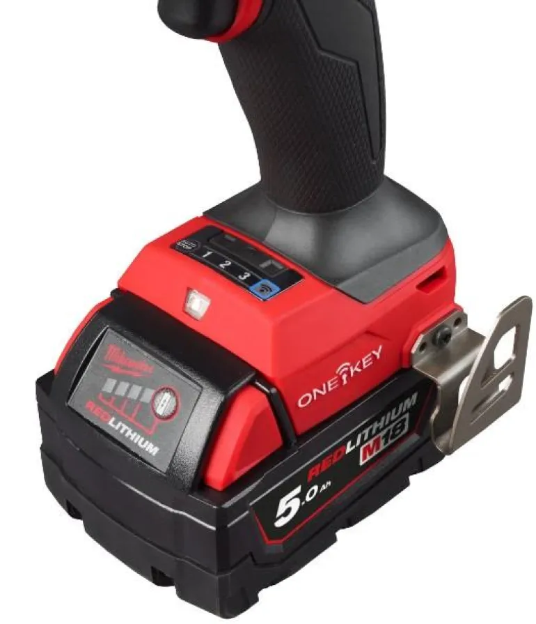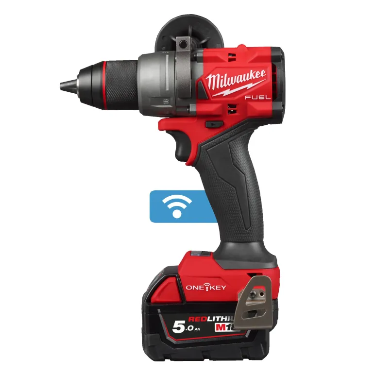 Milwaukee M18 FUEL™ -akkuporakone ONE-KEY™ -työkaluseurannalla työkaluhallinta-alustan avulla (lisäksi säädettävä kytkimen hallinta voidaan asettaa eri työtehtäviin ONE-KEY™-toiminnon avulla). Ruuvinvääntimessä on akun varaustason ilmaisin ja LED-valo työalueen valaisua varten. Varustettu myös vyökiinnikkeellä. Suurin porauskapasiteetti puuhun/teräkseen: 89/16 mm.