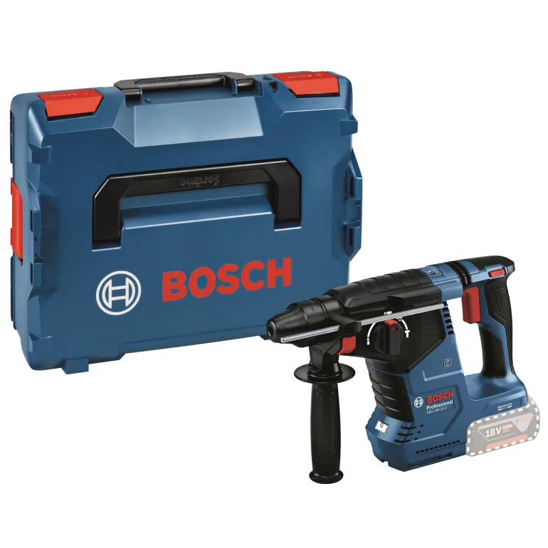 Bosch GBH 18V-24 C Professional on yleiskäyttöinen Boschin SDS plus -akkuporavasaraluokan työkalu, joka sopii optimaalisesti päivittäiseen käyttöön. Se on varustettu hiiliharjattomalla moottorilla ja sen KickBack Control- ja Vibration Control-toiminnot parantavat käyttöturvallisuutta. Sen käyttöliittymän näyttö ilmoittaa selkeästi akun varaustilan ja muut käyttäjälle tärkeät tiedot. Laitteen Bluetooth-yhteysmoduuli takaa nopean ja helpon kytkennän Bosch Toolbox -sovellukseen, mikä mahdollistaa omien säätöjen tekemisen. GBH 18V-24 C on yhteensopiva Boschin erillisen GDE 18V-16 Professional -pölynpoistojärjestelmän kanssa, joka liitetään poravasaraan yhdellä napsautuksella.