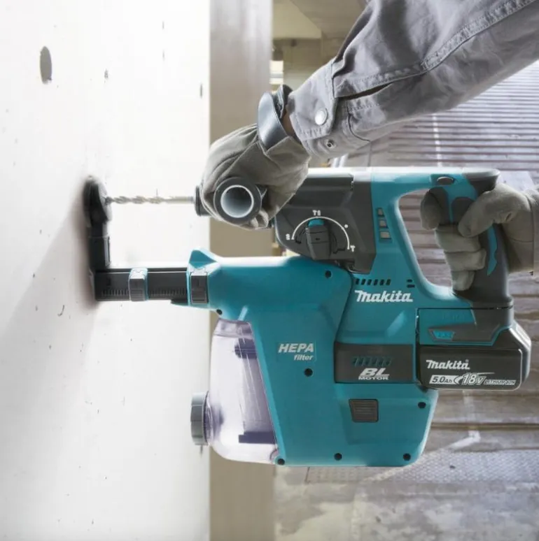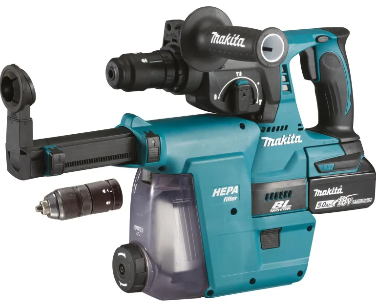 18 V:n hiiliharjaton akkuporavasara, jossa on kolme toimintoa: poraus ilman iskua, poraus iskulla ja piikkaus. Kompakti kone pikaistukalla. Mukana pölynimulisälaite DX02, HEPA-suodatin, 2 x 5.0 Ah akkua 45 minuutin latausajalla, laturi ja Makpac-laukku.