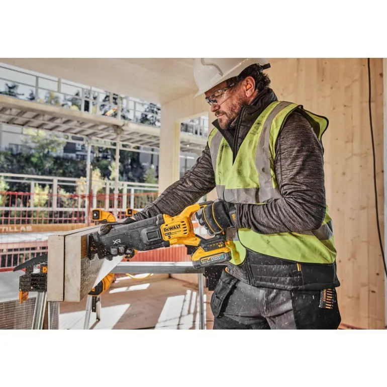 DEWALT DCS386H2T-QW on hiiliharjaton 18V XR -akkupuukkosaha kampityyppisellä voimansiirrolla, joka tekee käytöstä sujuvampaa ja tehokkaampaa sekä vähentää tärinää. Kuormittamaton nopeus on peräti 3 000 spm ja maksimileikkauskapasiteetti puuhun 300 mm.