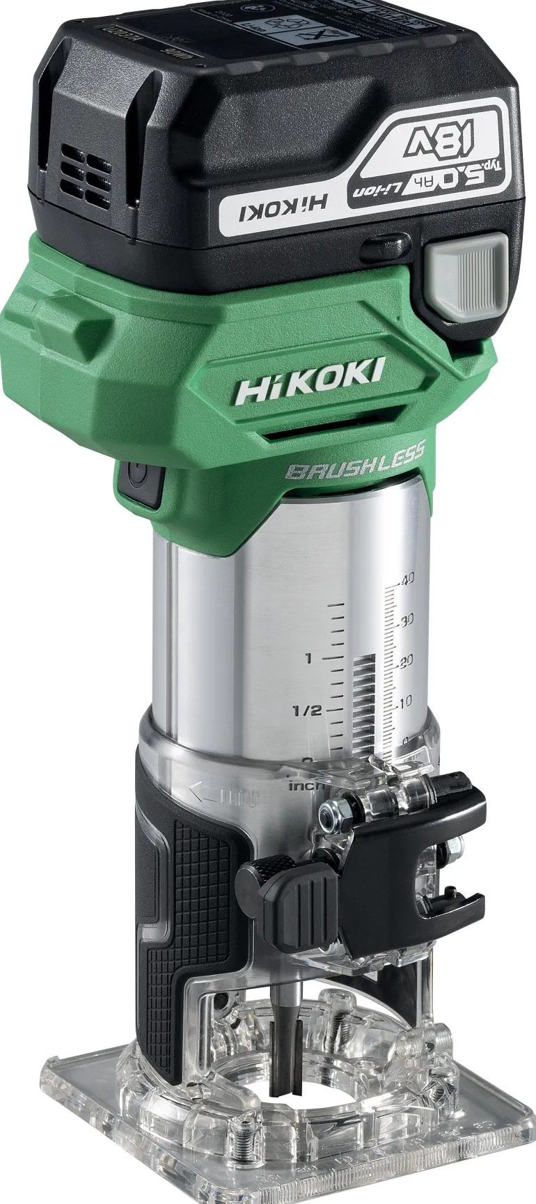 HiKOKI M1808DA on ergonominen ja kevyt 18 V akkureunajyrsin erinomaisella suorituskyvyllä ja kestävällä alumiinirungolla. Tehokas hiiliharjaton moottori tarjoaa pidemmän käyttöajan latausta kohden ja pidemmän käyttöiän. M1808DA soveltuu puuntyöstöön, uritukseen ja reunajyrsintään. Toimitukseen sisältyy 2 kpl 18 V 5,0 Ah -akkua, akkulaturi, holkit 6 ja 8 mm, sivuohjain, rullaohjain, kopiointirengas, imuriliitin, avain ja pinottava säilytyslaukku.