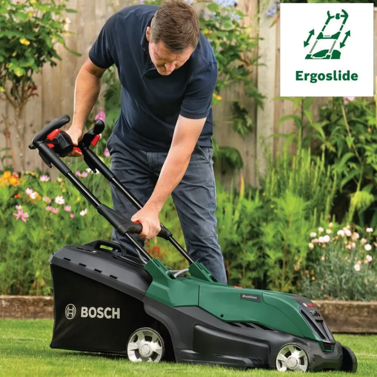 Boschin huipputehokas akkuruohonleikkuri suurten nurmikoiden leikkaamiseen. Pidä suuret nurmikot siistinä ja säästä aikaa Boschin tehokkaan AdvancedRotak 36V-44-750 -akkuruohonleikkurin avulla, jonka leikkuuleveys on jopa 44 cm. Tämä lujatekoinen, pitkäikäinen, hiiliharjattomalla moottorilla varustettu ruohonleikkuri on suunniteltu pitkän tai lyhyen ruohon optimaaliseen leikkaamiseen.