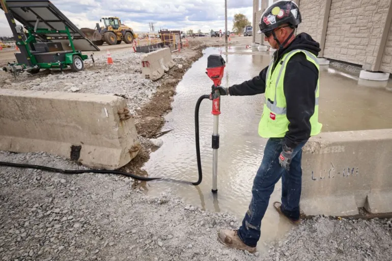 Milwaukee M18™ HYDROPASS™ hiiliharjaton vesipumppu, jonka ainutlaatuinen HYDROPASS™-suodatusjärjestelmä estää imuaukon tukkeutumisen ja antaa käyttäjän pumpata vettä roskista huolimatta. Pumppaa vaivattomasti jopa 5670 litraa/tunti. Työkalu voidaan upottaa 107 cm:iin, mikä mahdollistaa isojen lätäköiden helpon pumppaamisen jopa 5,1 metrin nostokorkeuteen.