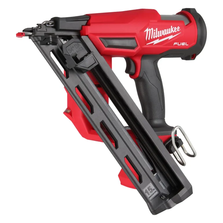 Milwaukee M18 FUEL™ 2-toimintoinen 15 GA -akkuviimeistelynaulain viimeisimmällä tekniikalla ja erinomaisella suorituskyvyllä, joka mahdollistaa naulaamisen kovaankin puuhun. Ei tarvetta kaasupatruunoille sekä vähäinen huoltotarve. Erilaiset kätevästi työkalussa säilytettävät päät parantavat käyttömahdollisuuksia ja viimeistelyn laatua. Pieni työkosketin sallii naulaamisen terävämmässä kulmassa.
