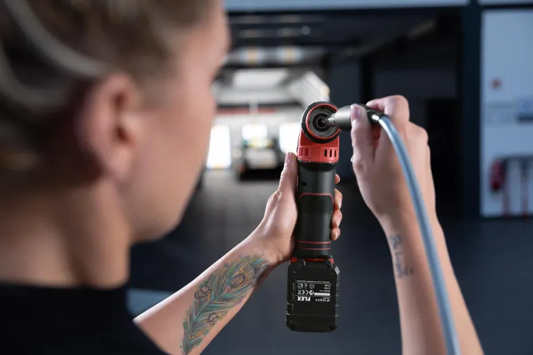 Joustavalla akselilla ja kiillotuskoneella PXE 80 10. 8-EC saat innovatiivisen järjestelmän pistekorjaukseen, kulmiin ja vaikeasti tavoitettaviin paikkoihin, joita ei voi työstää perinteisillä hiomakoneilla.
