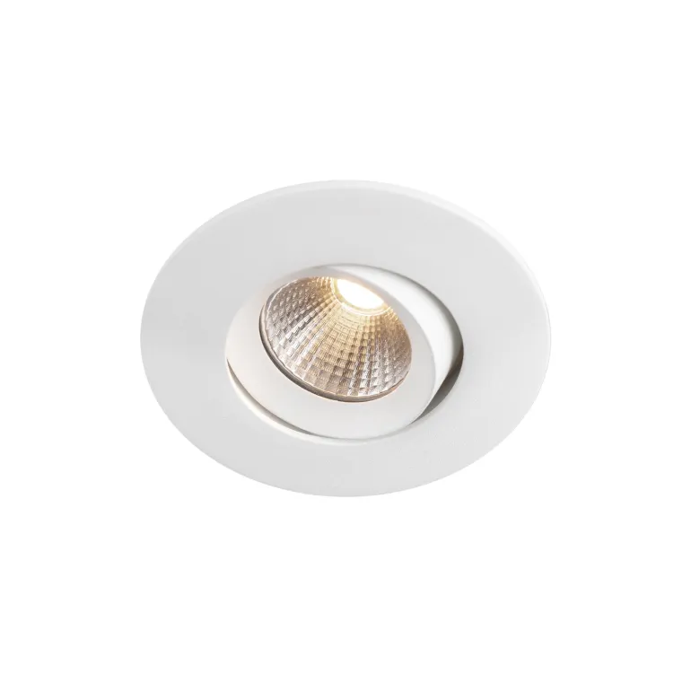Matalarakenteinen, suunnattava alasvalo, sopii asennettavaksi 28 mm harvalaudoitukseen ja hyväksytty asennettavaksi suoraan eristettä vasten. Asennusaukko 55-63 mm – täydellinen vanhojen halogeenivalojen korvaaja jälkiasennuksessa. Heijastintekniikka, häikäisemätön valokuvio, erittäin hyvä värintoisto, Ra>95. IP44-malli sisä- ja ulkoasennukseen. Vaihehimmennettävä ohjain helppoon 230 V asennukseen, 3-napainen ketjutusliitin sekä vedonpoisto ilman ruuvia. Himmennettävissä markkinoiden tavallisimmilla himmentimillä.