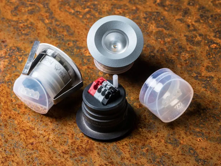 Pieni LED-spottivalaisin sekä sisä- että ulkoasennukseen. Kätevä integroitu pikaliitin, joka helpottaa sarjaankytkentää, poistaa ulkoisten jatkoliitosten tarpeen ja minimoi virhemahdollisuudet. Soveltuu erinomaisesti uppo- tai pinta-asennukseen esim. räystään alapintaan ja kylpyhuoneeseen. Vakiona IP44 alapuolelta ja käytettäessä mukana toimitettavaa silikonitiivistettä IP44 kauttaaltaan. Ohjain tilataan erikseen joko himmennettävänä tai ei-himmennettävänä.