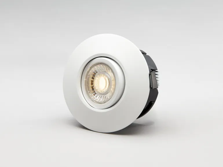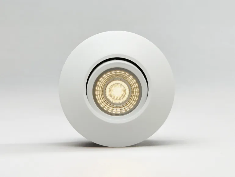 Hide-a-Lite Comfort Smart ISO Tilt on näppärä, helposti asennettava ja sunnaattava alasvalo, 230V. Sisältää Comfort-linssin, vaihehimmennettävän ohjaimen ja valaisinkoteloon integroidun ketjutettavan pikaliittimen. Mukautettu katto- ja kytkentärasioihin. Avaimenreikäasennus tai asennus suoraan eristeeseen mukana toimitetun ISO-kuvun avulla. Rasian pienin syvyys: 43 mm. Monipuolinen ja energiatehokas jälkiasennusvalaisin, joka mahtuu pieneen tilaan ja sopii valettavaksi betonikattoon rasian avulla.