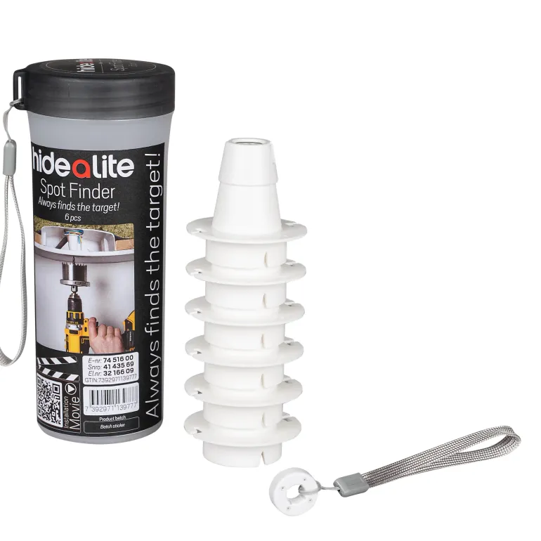 Kun Spot Finder on Spot Guard Glesissa, voidaan helpolla ja nopealla magneettietsinnällä löytää oikea paikka reikien poraamiselle, kun katto on valmis. Johdot voi kiertää kelalle niin, että ne eivät jää puristuksiin kipsilevyn Spot Guard Glesin väliin eivätkä osu poranterään. Sarja sisältää 6 Spot Finderia sijoitettavaksi Spot Guard Glesiin sekä 1 etsintämagneetin. Spot Guard Gles on uudistettu 5 kiinnikkeellä vaihtoehtoista sijoituspaikkaa Spot Finderia varten, joihin se painetaan ja kierretään kiinni ilman työkaluja