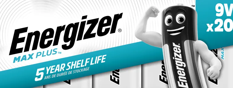 Energizer Max Plus on 9 V alkaliparisto, joka tarjoaa korkean suorituskyvyn korkean teknologian tuotteille. Max Plus pitää tehonsa 12 vuotta ja on vuotamaton. Laitteisiin jäävät käytetyt paristot eivät takuulla vuoda kahteen vuoteen. Toimitetaan 20 kpl:n pakkauksessa.