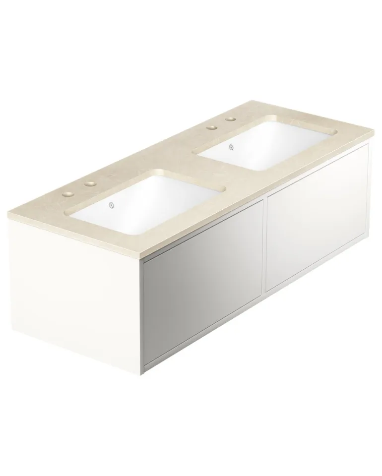 Gustavsbergin Ducentic -pesuallaskaappi keraamisella tai kivisellä allastasolla. Valittavissa myös tukikehyksellä tai ilman sekä yhdellä tai useammalla hanareiällä. Tasossa reikä yhdelle yksireikäiselle hanalle.
