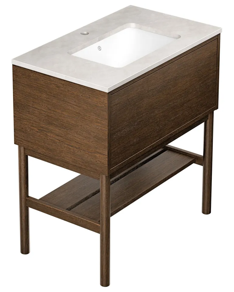 Gustavsbergin Ducentic -pesuallaskaappi keraamisella tai kivisellä allastasolla. Valittavissa myös tukikehyksellä tai ilman sekä yhdellä tai useammalla hanareiällä. Tasossa/pesualtaassa on kaksi hanareikää yhtä kaksireikäistä hanaa varten.