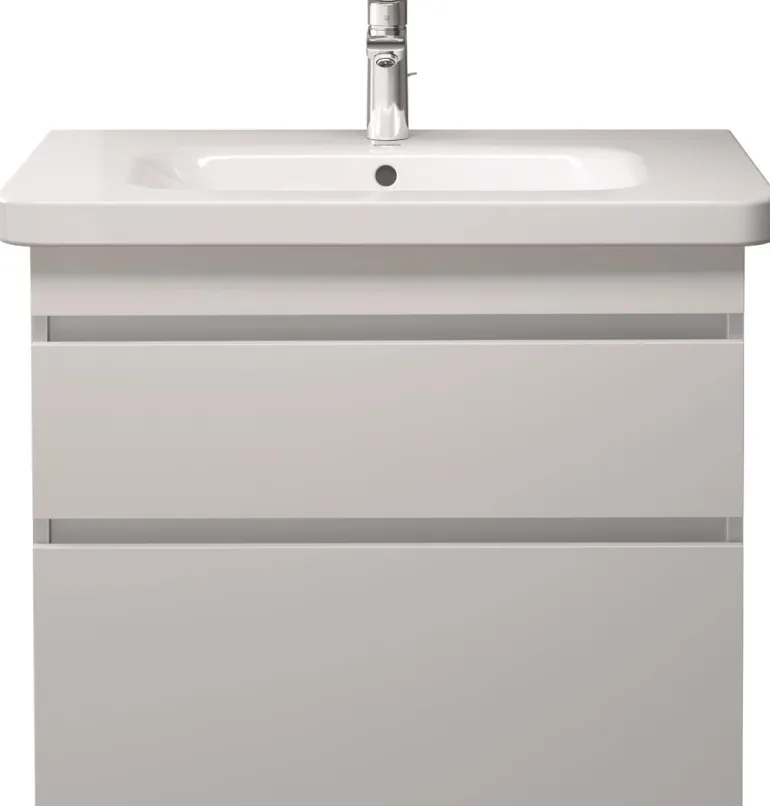 Duravit Durastyle– sarjan seinään kiinnitettävä allaskaappi kahdella laatikolla. Sopii käytettäväksi Durastyle – pesualtaalle (LVIK: 5617033).