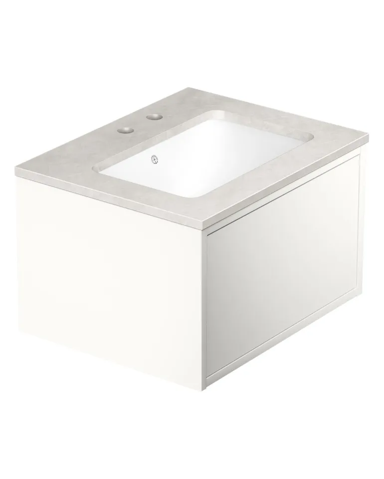 Gustavsbergin Ducentic -pesuallaskaappi keraamisella tai kivisellä allastasolla. Valittavissa myös tukikehyksellä tai ilman sekä yhdellä tai useammalla hanareiällä. Tasossa/pesualtaassa on kaksi hanareikää yhtä kaksireikäistä hanaa varten.