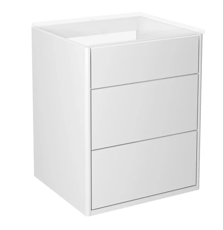 Gustavsberg Graphic on allaskaappi, jonka leveys 45 cm ja joka on varustettu kahdella pehmeästi sulkeutuvalla ja kokonaan ulosvedettävällä laatikolla. Allaskaapissa on yksi piilolokero laatikoiden yläpuolella, joka tarjoaa ylimääräisen laskutilan avattaessa. Avattava säilytyslokero sisältää myös magneettitelineen. Kaapissa on lisäksi tilaa säästävä vesilukko pop-up-toiminnolla, joka helpottaa puhdistusta.