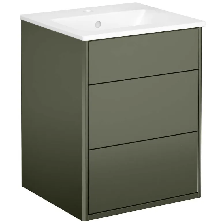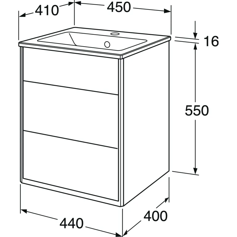 Pesuallaskaappi (45 cm) kokoleveällä pesualtaalla, pehmeästi sulkeutuvilla laatikoilla ja kapealla syvyydellä, joka tekee siitä soveltuvan myös pienempiin kylpyhuoneisiin. Kaapin rungon, ovien ja laatikoiden materiaali on kosteudenkestävää ja kylpyhuoneisiin tarkoitettua MDF-levyä.