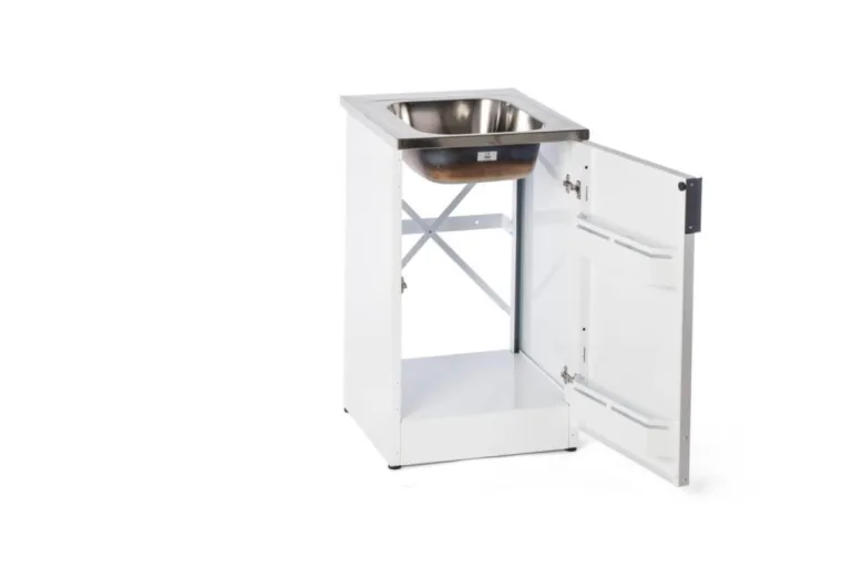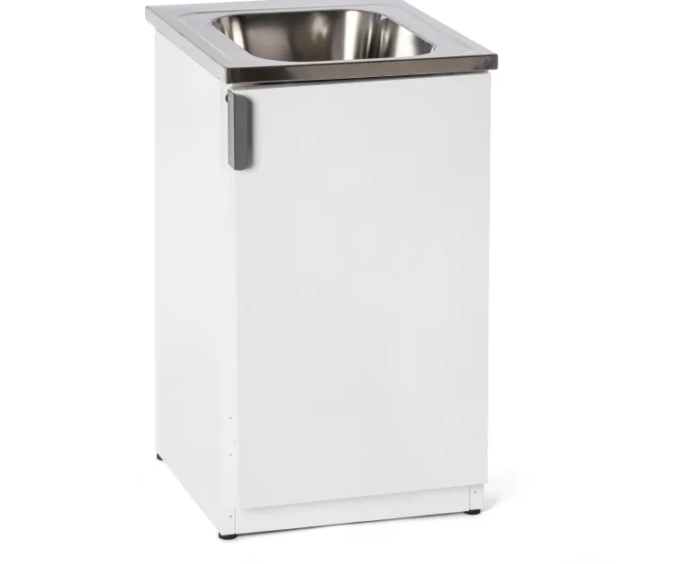 Nimo TB 500 T on valkoinen allaskaappi, jonka runko ja sen osat pinnoitettua terästä. Mallissa on yksi ovi, tila pesuaineille, lapsilukko, kaksinkertaiset säilytyslokerot ovessa, ovessa hidastimet ja piilosaranat sekä täysin integroitu alusta.
