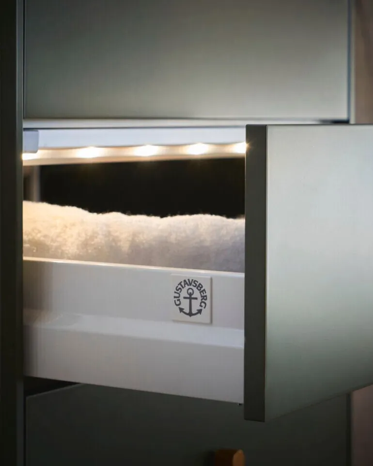 Gustavsberg Graphic on pesuallaskaappi (1000 mm) kokoleveällä pesualtaalla ja pehmeästi ja hiljaisesti sulkeutuvilla laatikoilla. Kapea syvyyssuunnassa, ja mahtuu näin hyvin pienempäänkin kylpyhuoneeseen. Materiaali kylpyhuoneisiin tarkoitettua kosteudenkestävää MDF-levyä. Allaskaapissa on avattava säilytyslokero, joka antaa lisää laskutilaa (mukana magneetti pientavaroille). Kokonaan ulosvedettävät, pehmeästi ja hiljaisesti sulkeutuvat laatikot, joista kaikki löytyy helposti. Sileä etuosa. Helposti asennettava ja säädettävä kiinnitysjärjestelmä sekä tilaa putkiasennukselle laatikoiden takana. Mukana tilaa säästävä vesilukko, jossa on pop-up-toiminto. Sama materiaali ja väri rungossa, ovissa ja laatikoissa. Saatavana useita erityylisiä vetimiä.