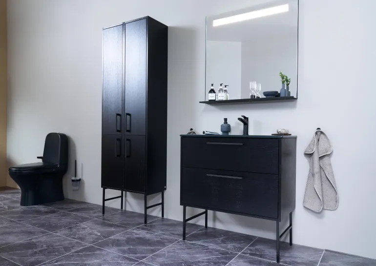 Gustavsberg Artic on musta pesuallaskaappi, jossa kaksi laatikkoa, ilman pesuallasta, 100 cm. Hiljaisesti ja pehmeästi sulkeutuvat, täysin ulosvedettävät vetolaatikot, joissa kaikki tarvikkeet ovat hyvin näkyvillä. Allaskaapin runko ja laatikot ovat samaa materiaalia ja samanväriset. Laatikoiden takana on tilaa putkistolle. Erityylisiä vetimiä on saatavana lisävarusteena tai valittavana on myös vetimetön push-open-vaihtoehto. Pesuallaskaappi on valmistettu kosteisiin tiloihin tarkoitetuista kosteutta kestävistä materiaaleista. Mukana helposti puhdistettava vesilukko, jossa pop-up-toiminto.