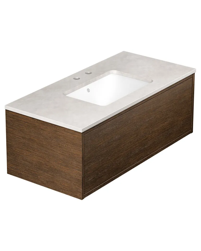 Gustavsbergin Ducentic -pesuallaskaappi keraamisella tai kivisellä allastasolla. Valittavissa myös tukikehyksellä tai ilman sekä yhdellä tai useammalla hanareiällä. Tasossa/pesualtaassa on kaksi hanareikää yhtä kaksireikäistä hanaa varten.