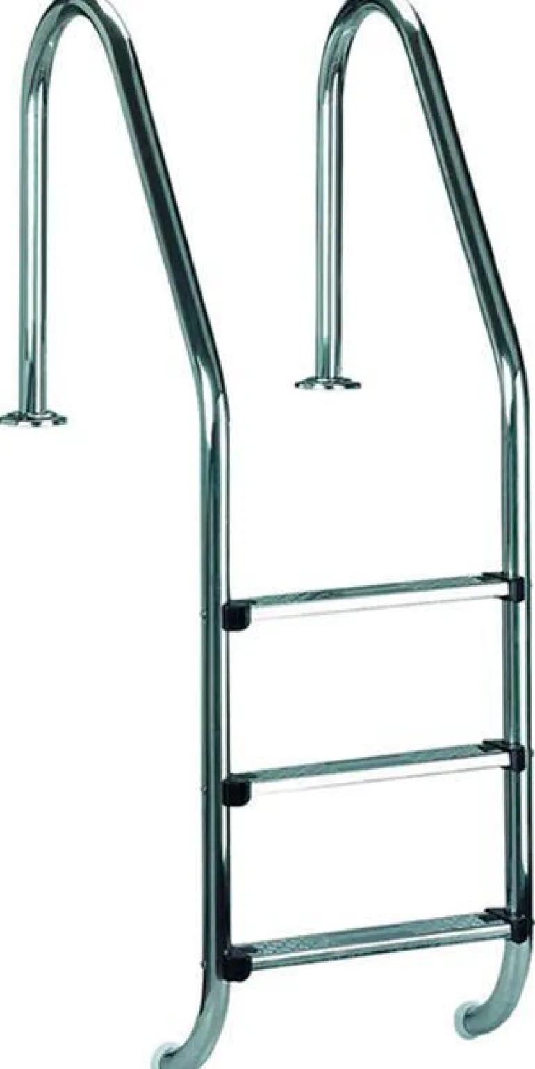 Ruostumattomasta teräksestä valmistetut inground-tikkaat, joissa on kolme askelmaa, maahan upotettuihin tai integroituihin altaisiin. Liukumaton turvapinnoite.
