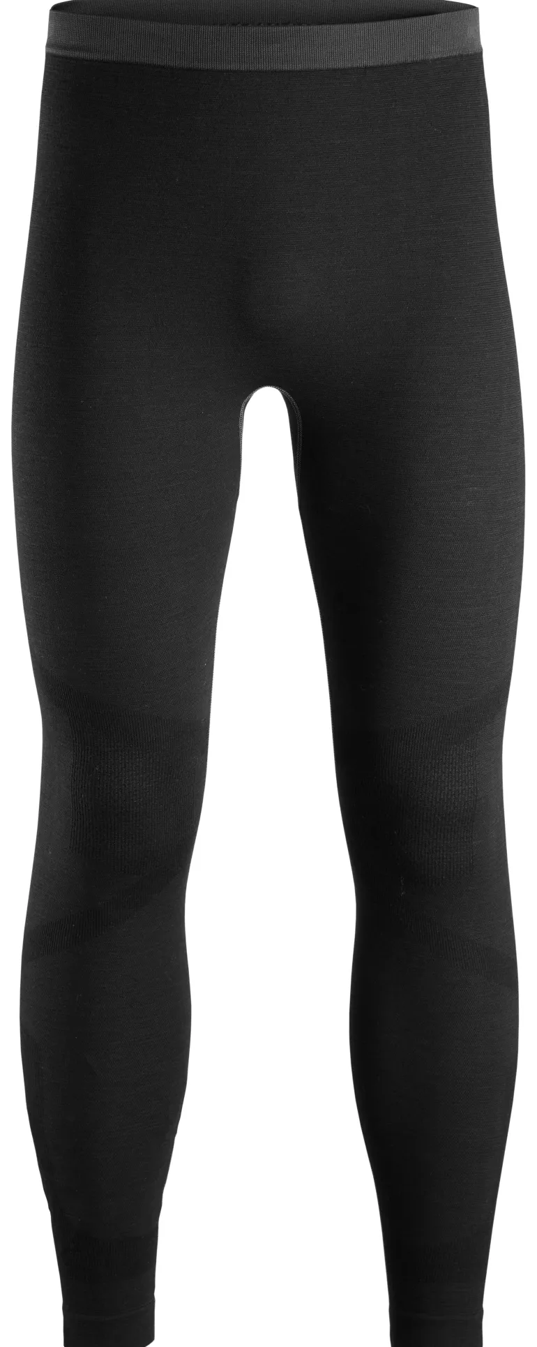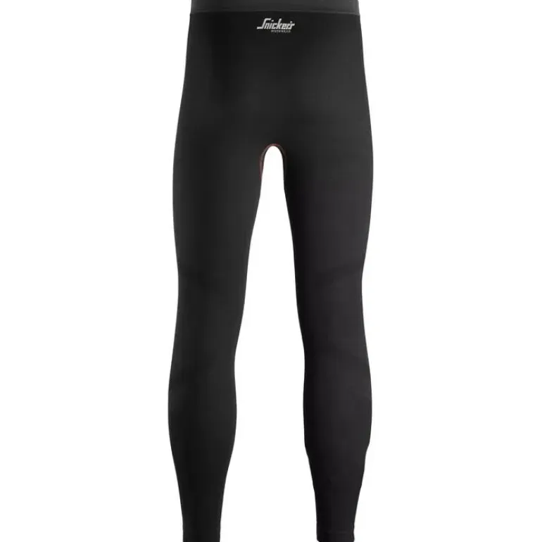Pehmeän villan ja polyamidin sekoituksesta valmistettu saumaton aluskerraston alaosa, joka eristää, siirtää kosteutta ja tarjoaa mukavuutta kylmissä olosuhteissa. Villa estää luonnostaan hajuja ja vangitsee tehokkaasti lämpimän ilman lähelle kehoa. Polyamidi taas siirtää tehokkaasti kosteutta pois ja on hellävarainen ihoa vasten. Vartalonmukainen muotoilu tarjoaa tukea ja tuuletusta siellä, missä sitä eniten tarvitaan. Koristeelliset oranssit tasosaumat ja Snickers Workwear -logo takana.