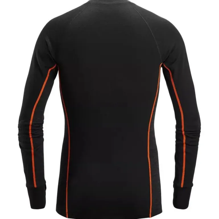Toiminnallinen merinoaluskerraston yläosa kylmissä olosuhteissa työskentelyyn. Kaksinkertaisesta neuloksesta tehty rakenne, jossa yhdistyvät villan lämpö ja erinomaiset kosteutta siirtävät ominaisuudet. Suunniteltu mukavuutta ja parasta suorituskykyä varten kylmiin olosuhteisiin. Tässä toiminnallisessa aluskerraston yläosassa on kaksinkertainen neulottu rakenne. Ulkopinta on valmistettu 100 % mulesing-vapaasta merinovillasta, joka on erittäin lämmin. Synteettisistä kuiduista valmistettu sisäpuoli siirtää tehokkaasti kosteutta pois iholta aiheuttamatta kutinaa. Yläosassa on koristeelliset tasosaumat hankautumisen minimoimiseksi. Peukaloreiät hihansuissa lisäävät mukavuutta. Snickers Workwear -logo.