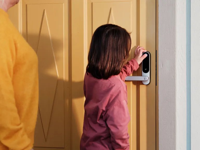 Oletko kyllästynyt etsimään avaimia, kun tulet kotiin? Nimly Touch Pron avulla voit helposti avata oven sormenjäljelläsi tai käyttäen koodia. Voit helposti luoda oman enintään 8-numeroisen koodin, jolla voit avata oven. Kun naamiointiominaisuus on käytössä, voit naamioida koodisi muille syöttämällä vääriä numeroita sekä ennen että jälkeen oman varsinaisen koodin. Kooditoiminnon lisäksi ovi voidaan avata myös avaintunnisteilla, joita voit jakaa kaikille kodissa asuville. Jos avaintunniste katoaa, se voidaan helposti poistaa järjestelmästä. Jos älylukon paristot loppuvat, voit aina turvata sisäänpääsyn hätäavaimella, joka avaa lukon normaalilla, mekaanisella tavalla.